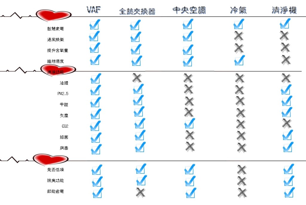 不須頻繁清潔,您只需要每年定期去更換清淨機的濾網!因為VAF沒有像傳統空調的大管路。