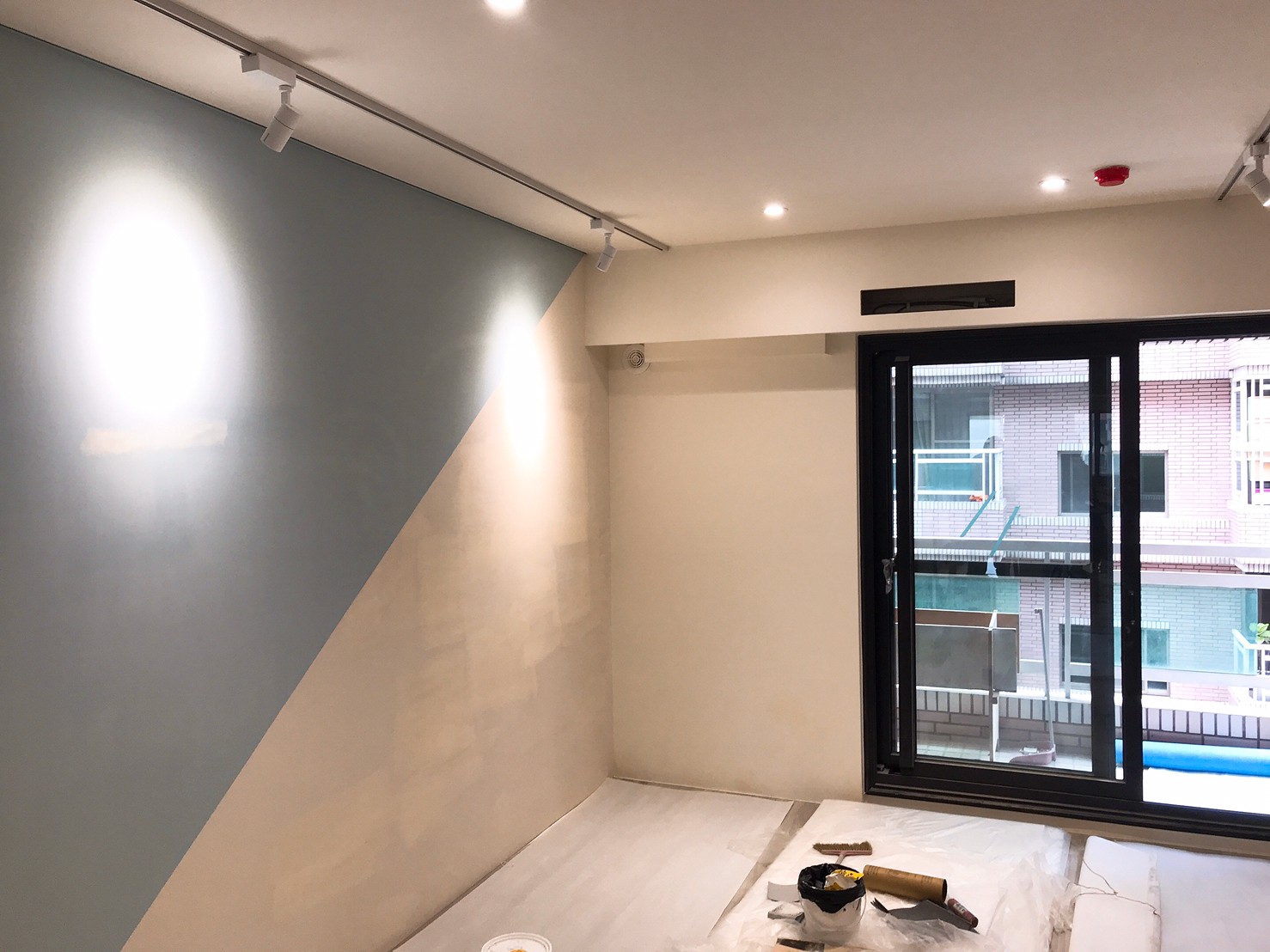 正壓方面,考慮到室內裝潢,將清淨機安裝在陽台上,如果裝潢能確實做好防潮與包覆,安裝於戶外是可行的。出風口方面,與屋主討論後分成了兩個出口,客廳與主臥各一半,經過討論使用可開關的風口,以方便屋主利用。