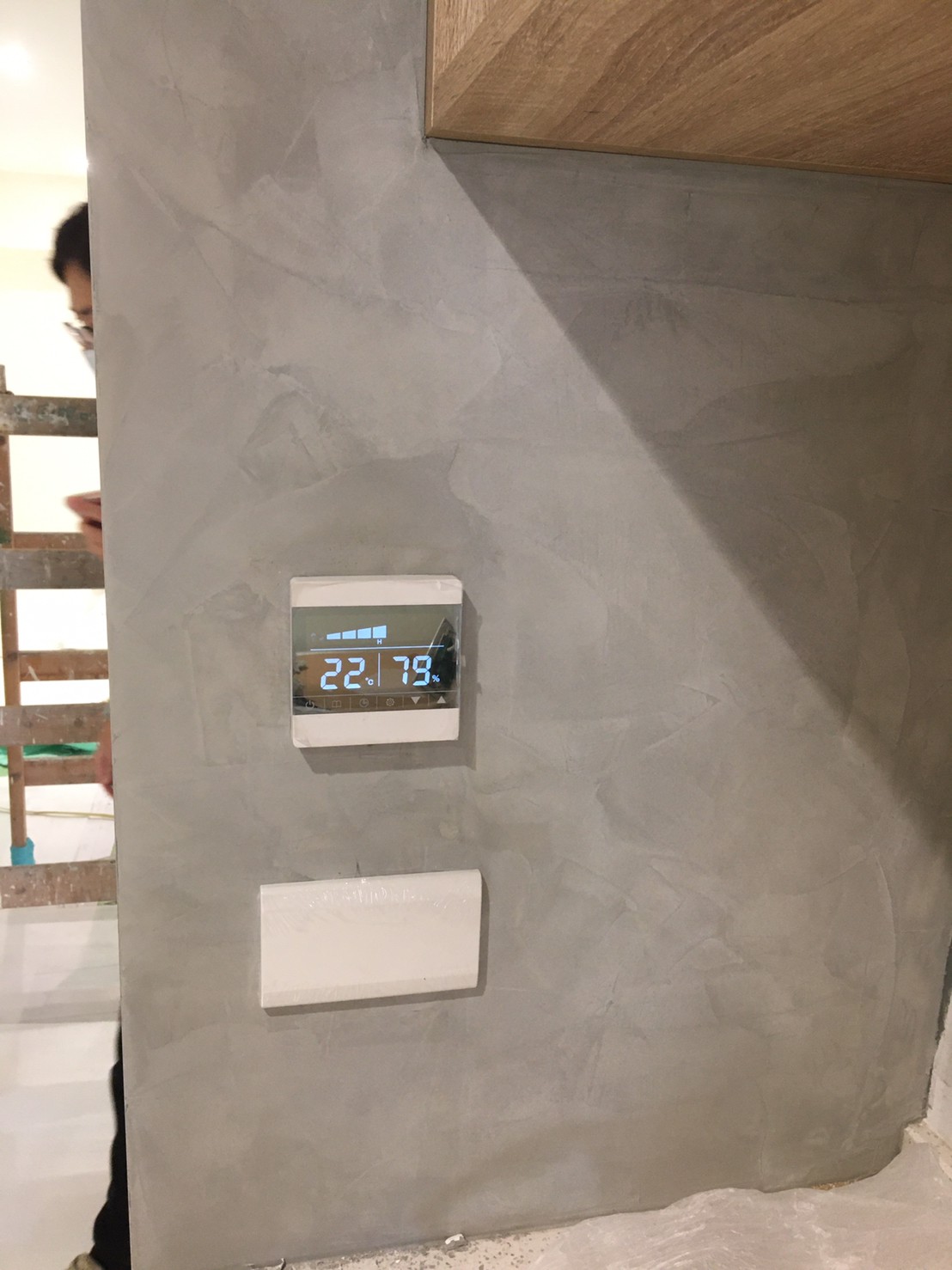 VAF系統不需要冗長的風管管路,因此在廚房的小空間也能利用。在廚房的控制開關方面,屋主選用不支援網路的控制開關,僅有溫度與濕度感測與設備控制功能,因為在廚房的使用經驗上,屋主鮮少使用手機控制,也不需要pm2.5的檢測