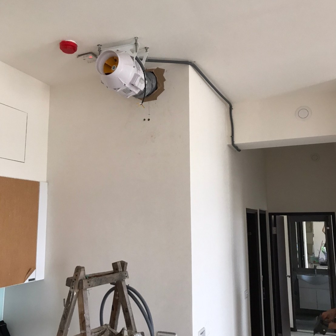 此案中為開放式廚房,因此嘉定選用低噪的排氣風機,