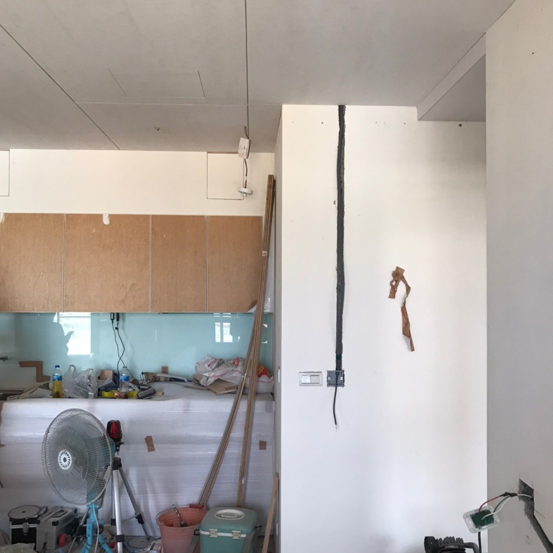 事先預留好的電路與控制開關預埋盒,此案VAF系統中使用的是智慧控制開關,