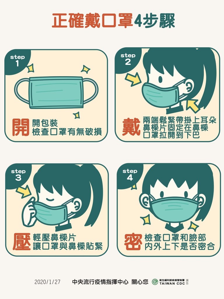 口罩有破損、弄濕或惹污,應立即更換,並只可使用一次。