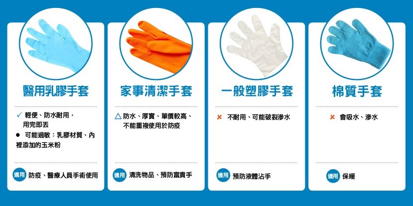 ● 手套:流汗、濕疹、皮膚皺褶、不透氣,可能有過敏