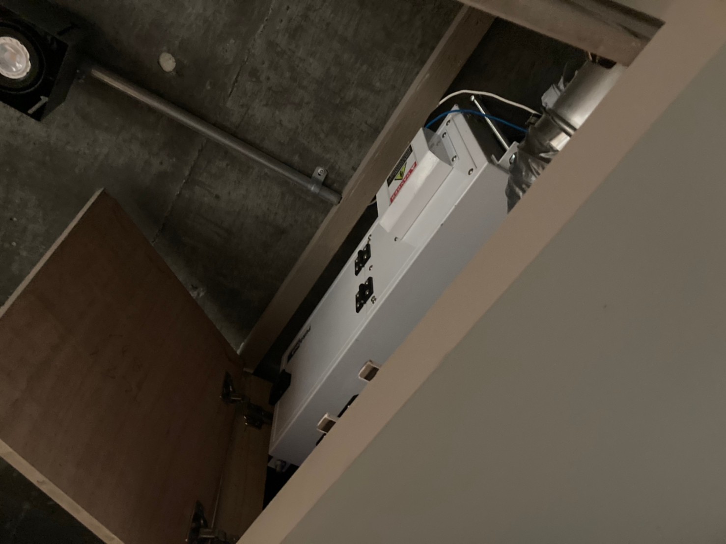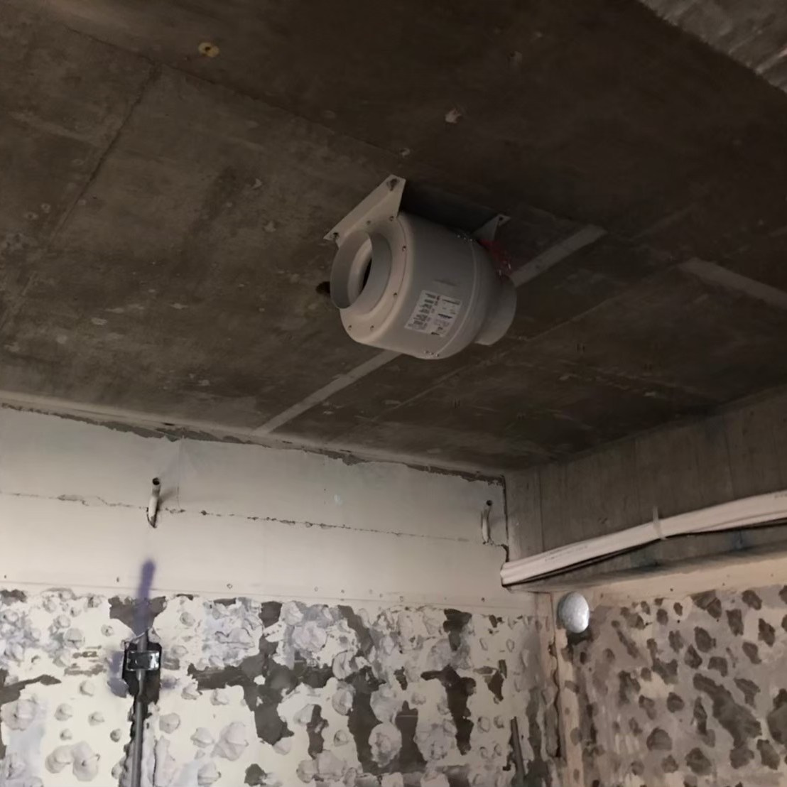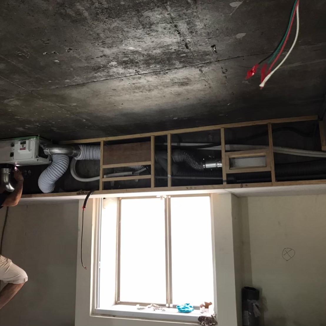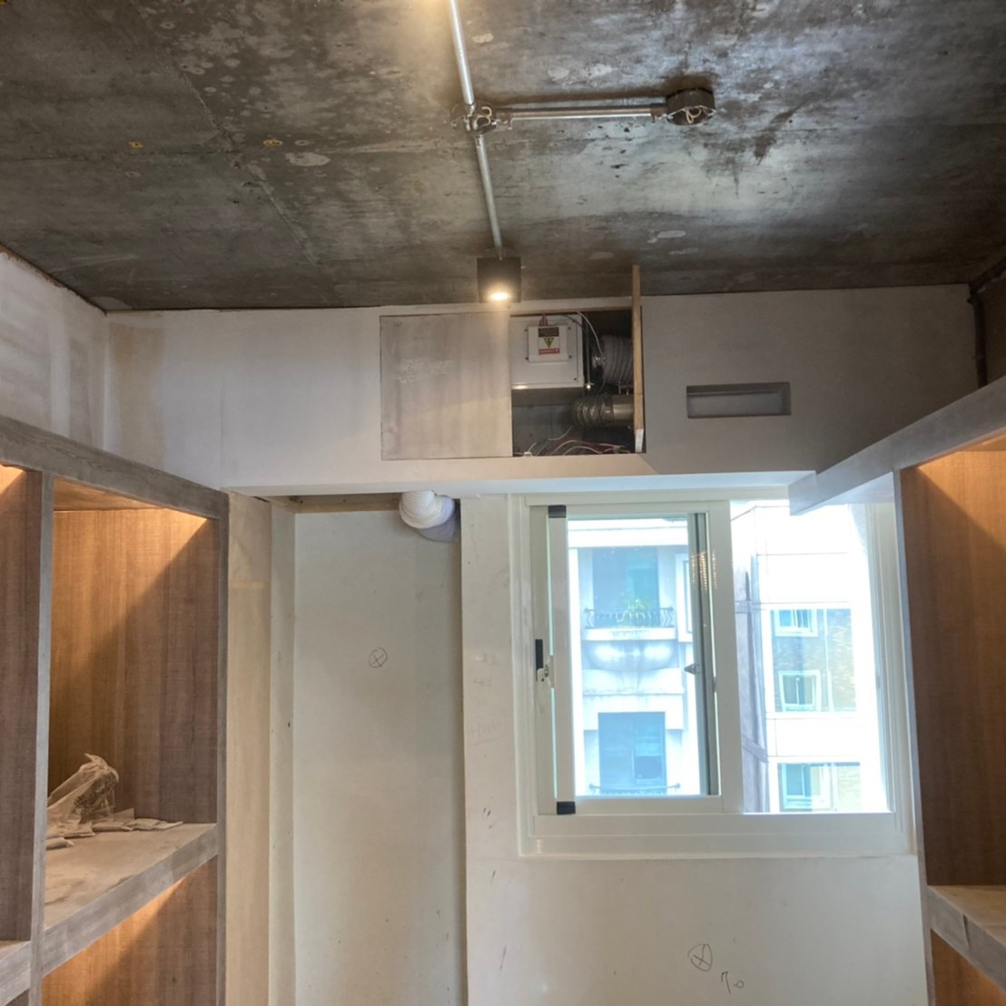 事先預留好的電路與控制開關預埋盒,此案VAF系統中使用的是智慧控制開關,預埋盒採歐規規格是86mm長寬40mm深的正立方體,所以無法直接使用市面上的預埋盒,