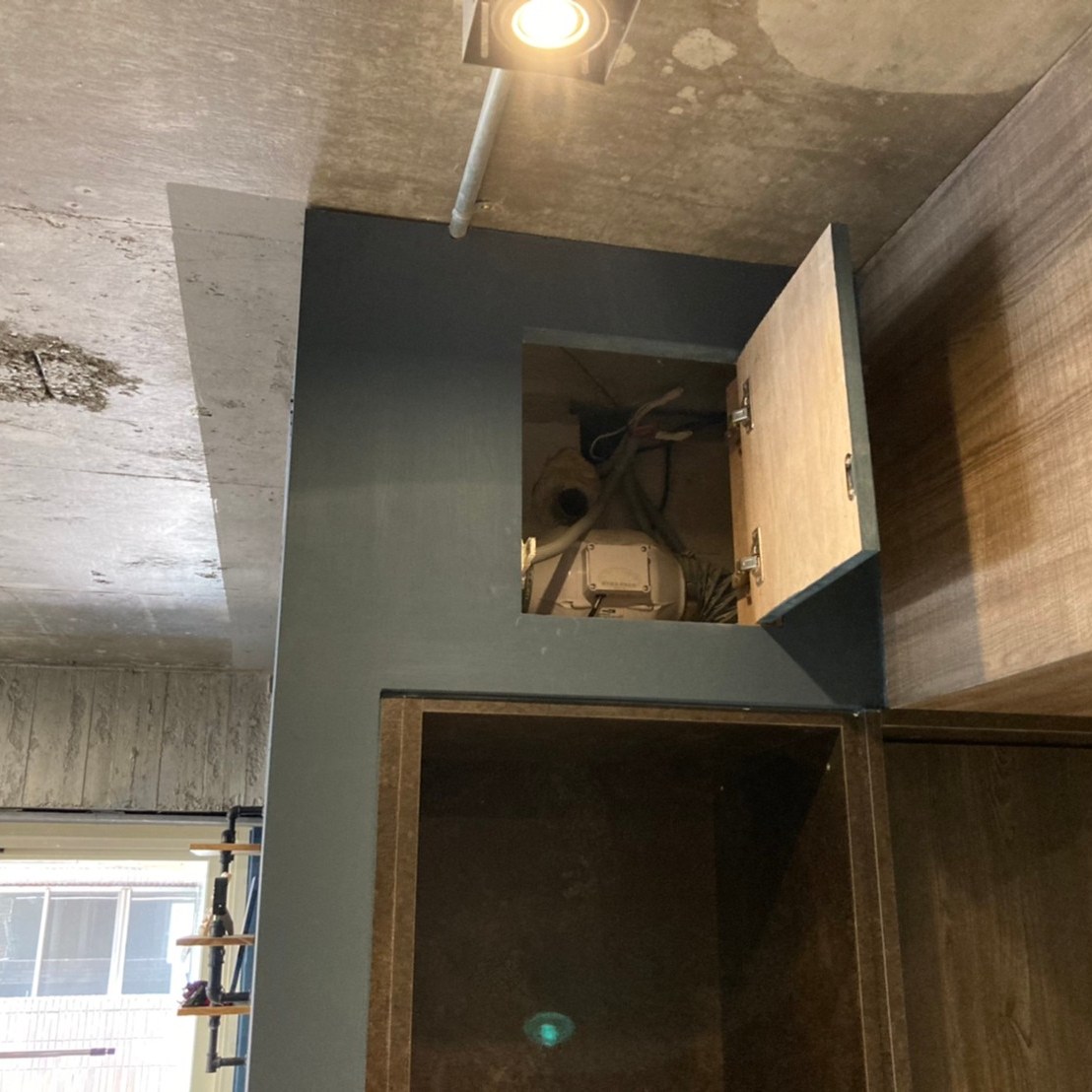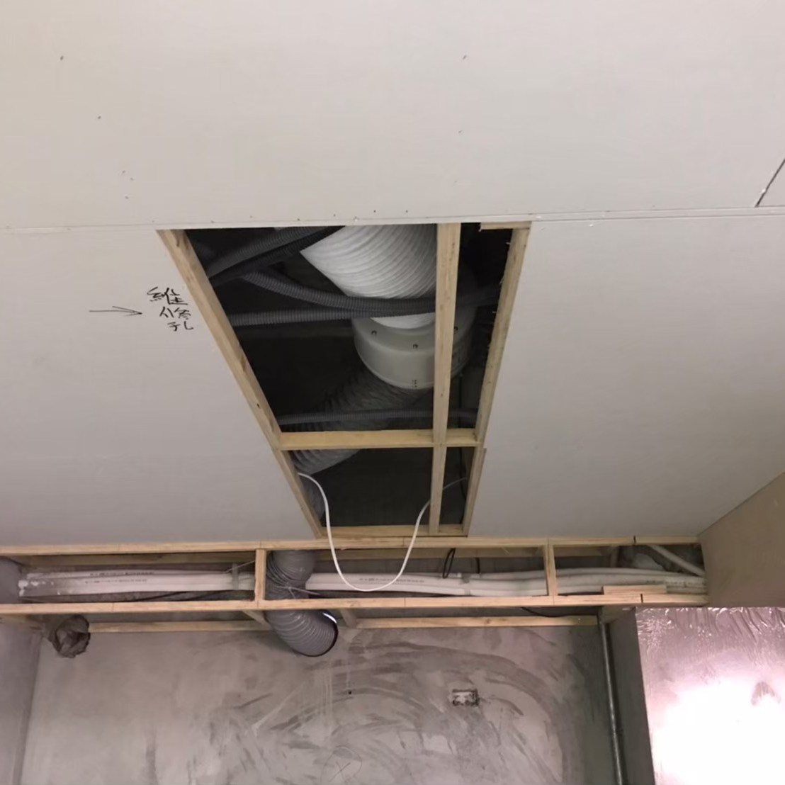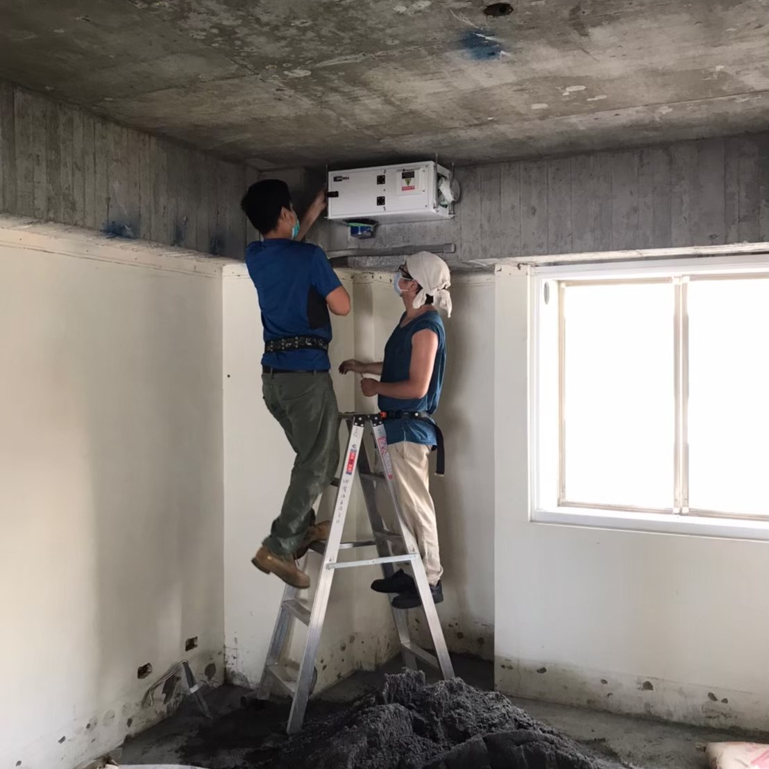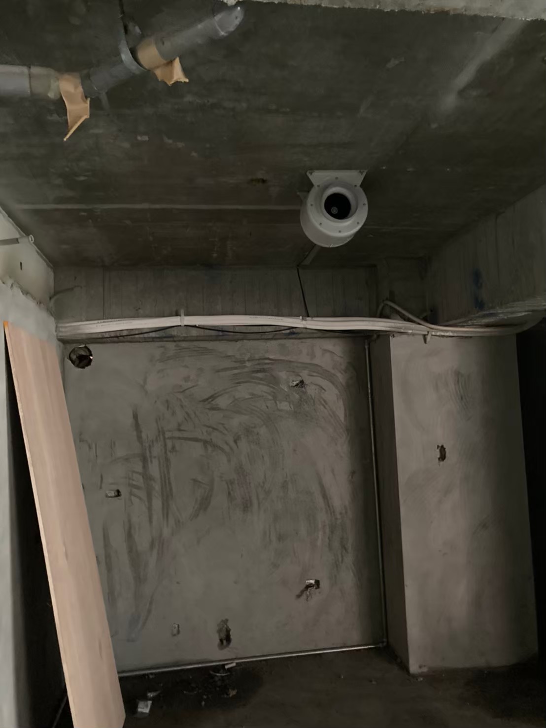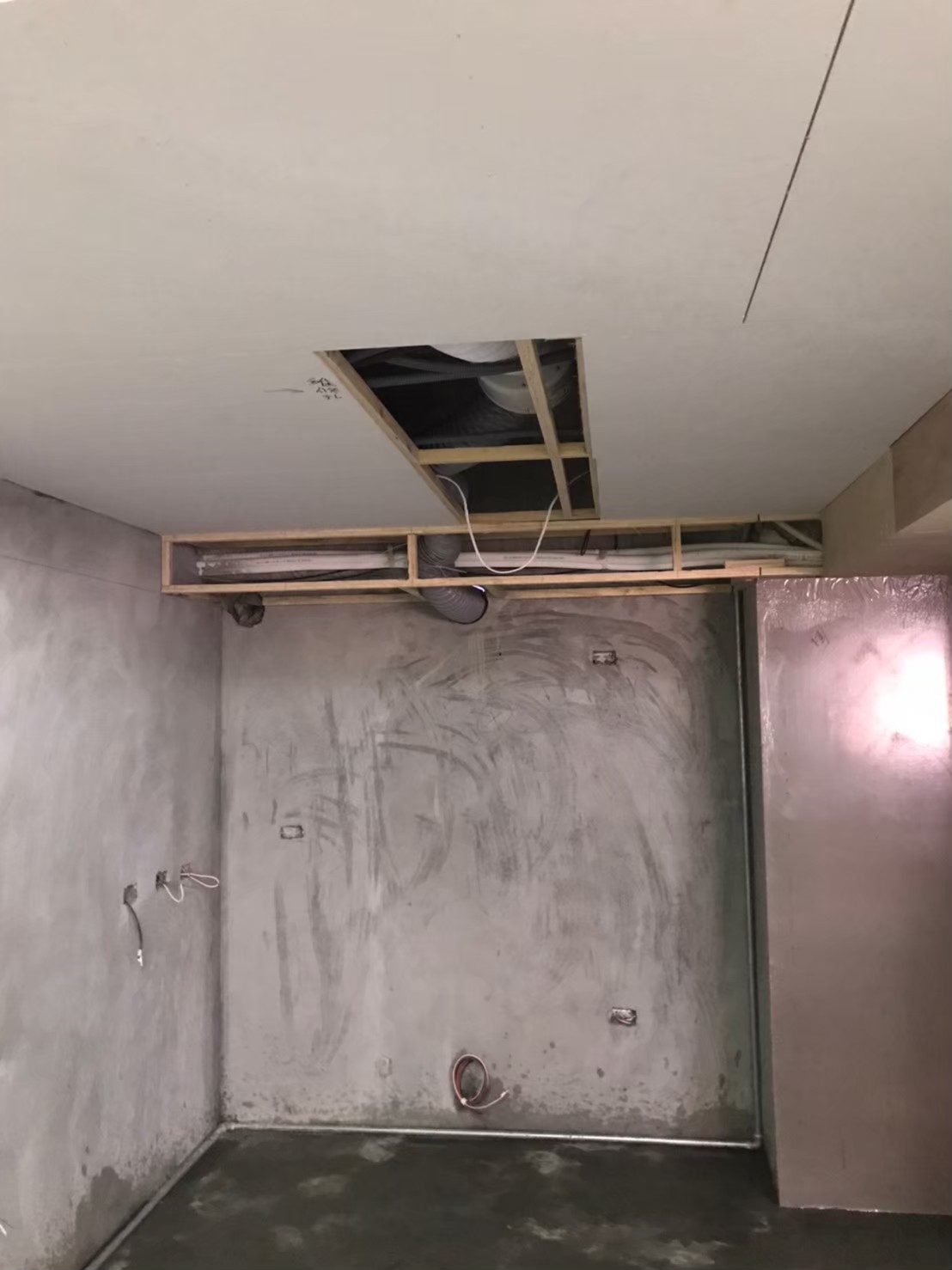 事先預留好的電路與控制開關預埋盒,此案VAF系統中使用的是智慧控制開關,預埋盒採歐規規格是86mm長寬40mm深的正立方體,所以無法直接使用市面上的預埋盒,