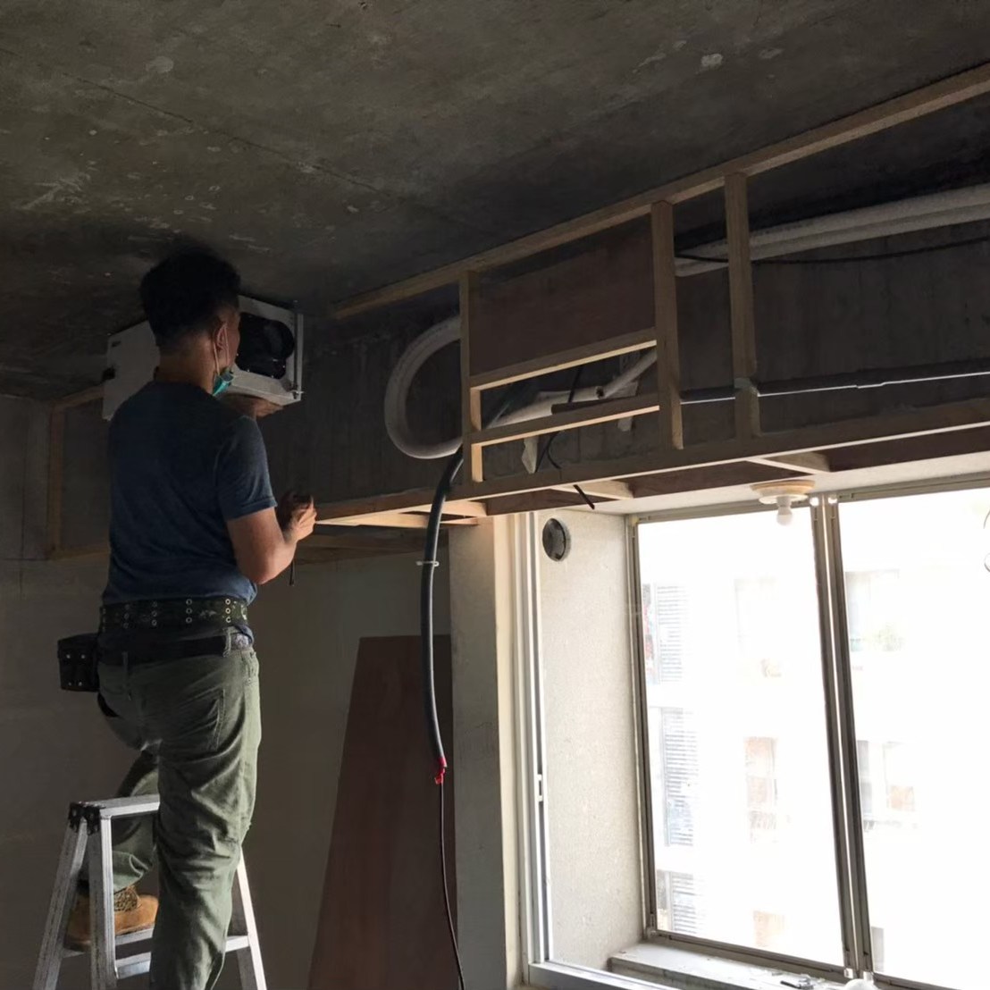 此案的設計師採工業風的裝潢,可以看到上方分享的紀錄照,