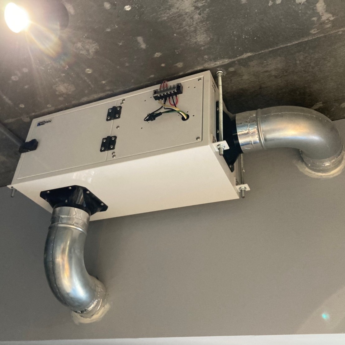 使用全熱交換器系統做熱交換配置,會將空氣中污染物吸附在熱交換芯上,再藉由熱交換進出空氣交換,隨著新鮮空氣再次進入到室內空間成為二次汙染,同時因為髒汙的附著,全熱交換系統中的熱交換功能將會完全喪失。
