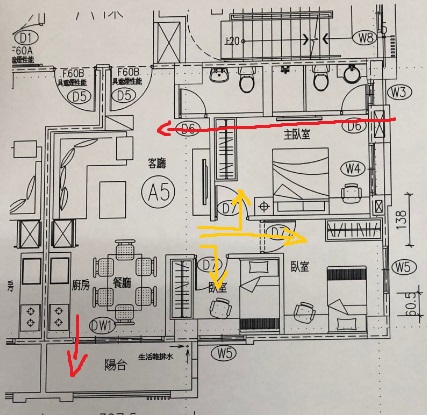 因此排氣的重點在於廚房與餐廳的空間,也正好有對外空間可以利用。