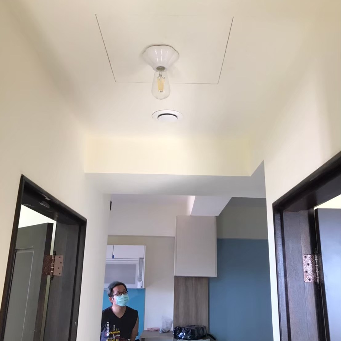 上圖中的圓盤風口與格柵風口,都是可以選用的,右邊兩張紀錄照,是沒有施作裝潢天花,以直接安裝風口的方式去呈現,同時也配合裝潢配色需求。