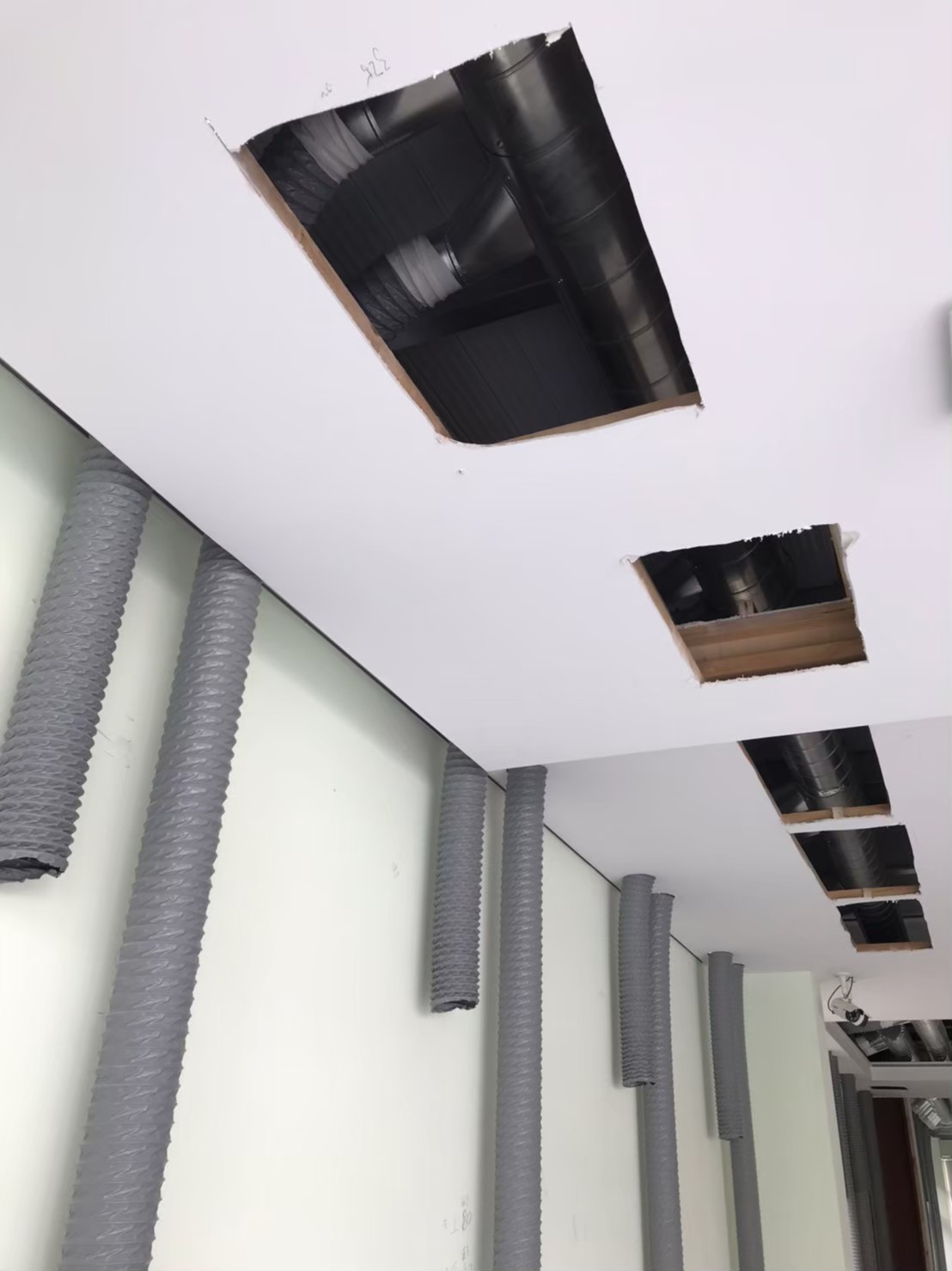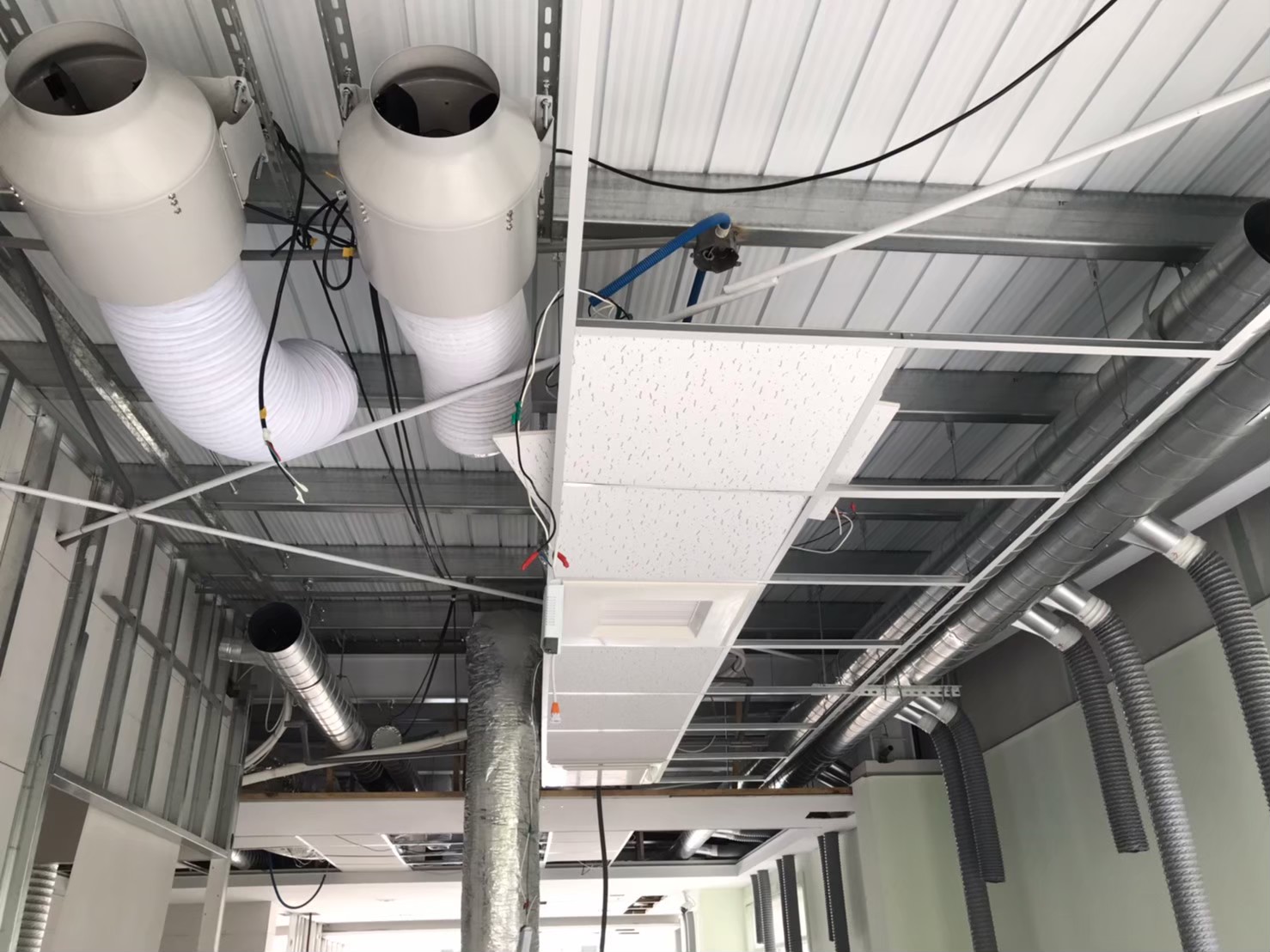 此案在排氣設備的擺放上,共設定了五台負壓風機,為空間提供了充足的排氣量。