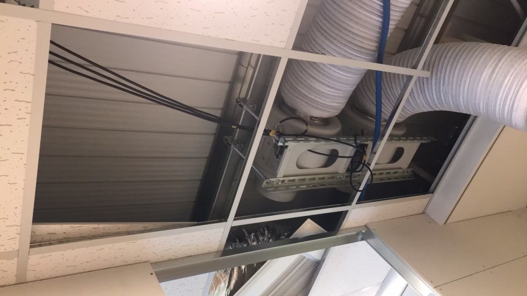 此案活動空間與員工室,也將過濾後的戶外空氣導入,空氣正壓清淨設備為圖中右側兩台綠色的「500」標示,受空間面積影響,因此需要使用兩台設備。